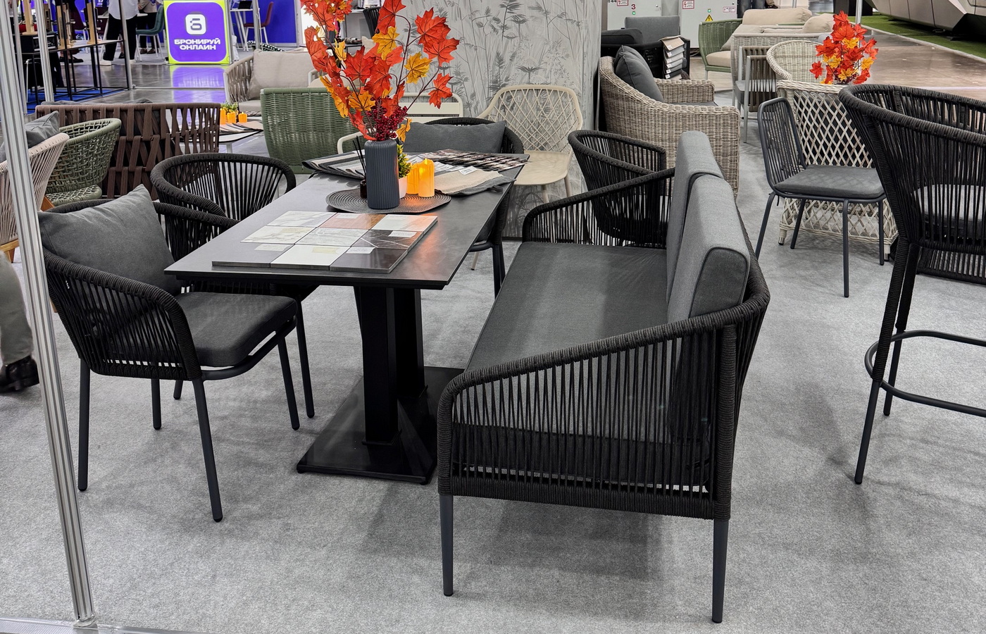 Компания 4SiS, производитель уличной мебели из роупа, искусственного ротанга, алюминия и стали, представила на своём стенде широкий спектр новинок. Гости смогли оценить обновлённую линейку мебели из искусственного ротанга в бежевом цвете, а также яркие модели из роупа в зелёном и оранжевом исполнениях. Особого внимания заслужила новая ткань Mossle, добавленная в ассортимент: она доступна в трёх оттенках — бежевом, светло‑бежевом и тёмно‑сером. Мы существенно расширили цветовую палитру продукции, чтобы предложить клиентам больше вариантов для гармоничного оформления уличных пространств. Все представленные образцы сочетают эргономику, устойчивость к внешним воздействиям и современный дизайн, что особенно ценно для объектов гостинично‑ресторанного сектора. Каждая модель демонстрировалась в контексте стилизованных зон — так посетители могли сразу представить, как мебель впишется в реальное пространство кафе или отеля.