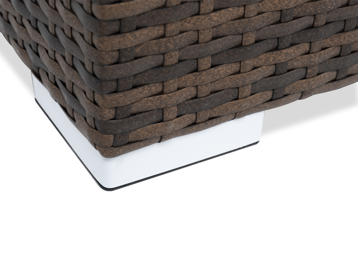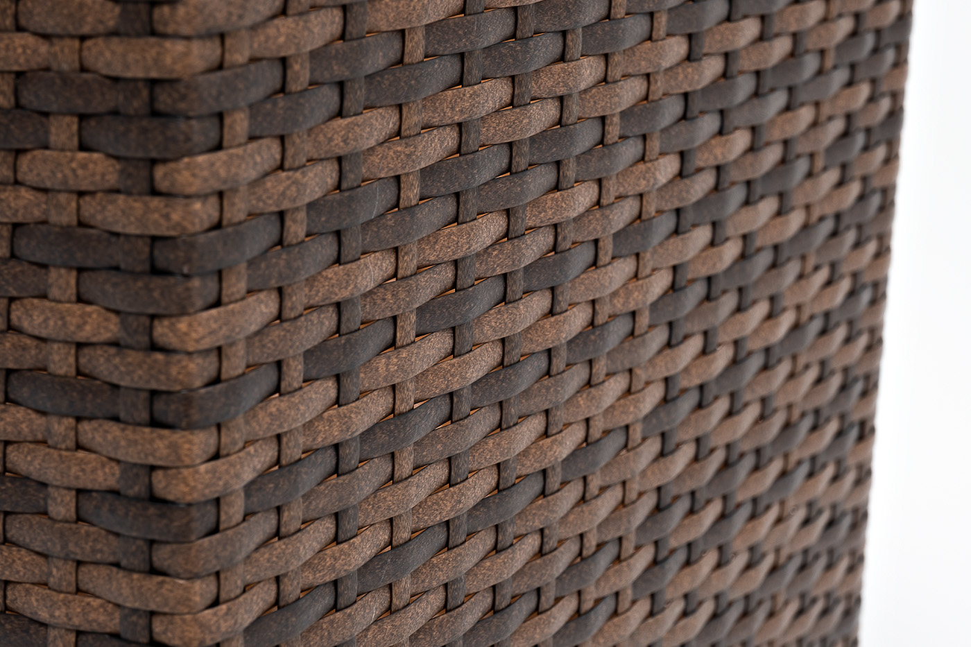 В основе алюниевый каркас, который вручную оплетен ротангом.