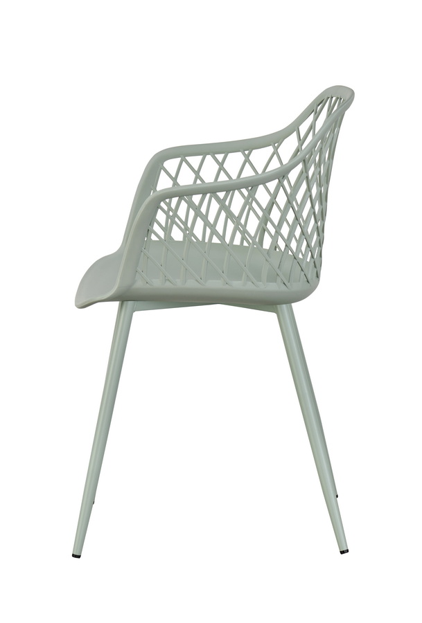 Изготовлен из полипропилена, прочного и стойкого пластика, устойчивого к УФ-излучению, благодаря этому стул сохраняет свой первоначальный вид и не выцветает на солнце даже несмотря на активную эксплуатацию. Цвет - серо-зеленый.