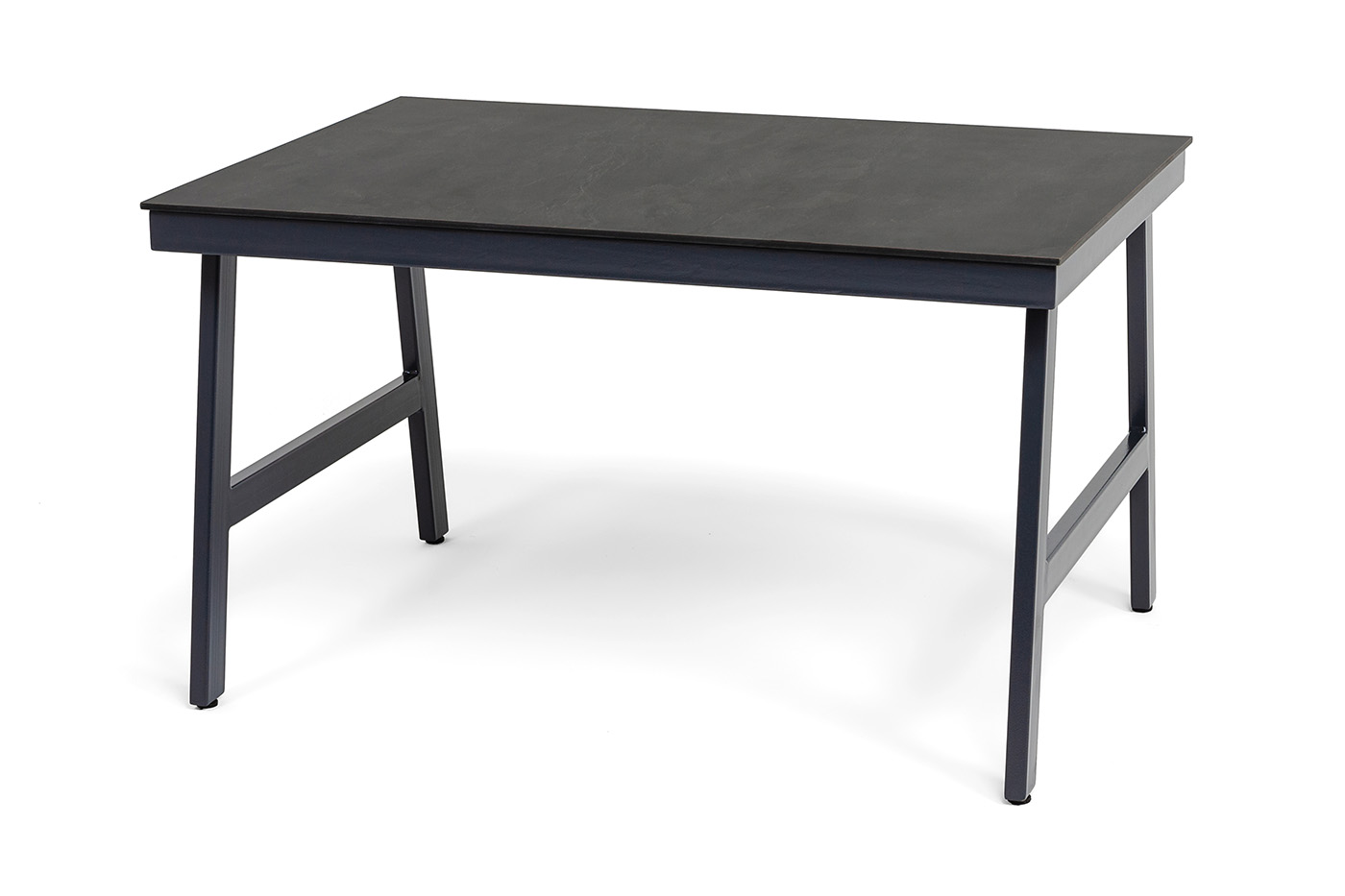 Размер стола - 1400×700×750 мм. Столешница изготовлена из компакт-пластика HPL c рисунком цвета «серый гранит».