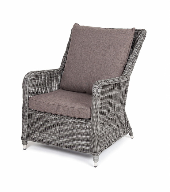 Садовое кресло укомплектовано удобными серыми подушками. Полиэстер используется при пошиве тканевых изделий, плотность которого - 300гр/м2. Материал имеет обязательную влагоотталкивающую пропитку для усиления его защитных свойств.