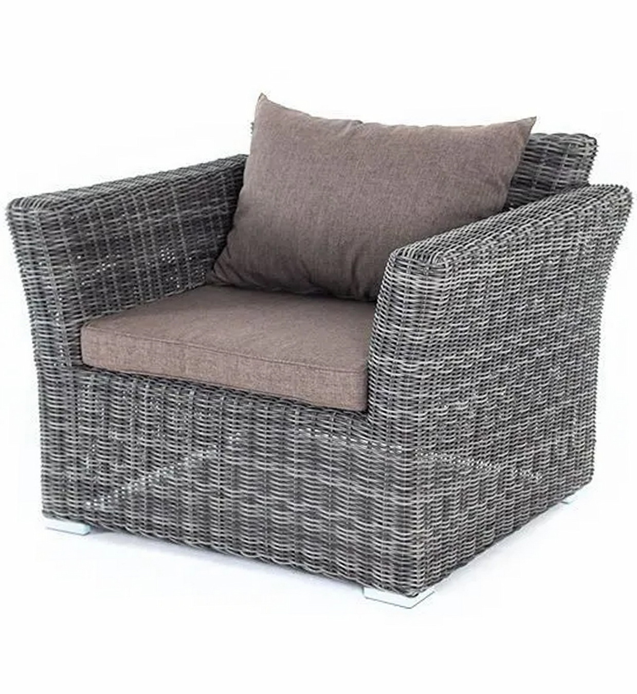 Две подушки серого цвета представлены в комплекте с садовым креслом. Изделия пошиты из полиэстера плотностью 300гр/м2. В обязательном порядке материал обрабатывается влагоотталкивающей пропиткой для усиления своих защитных свойств.