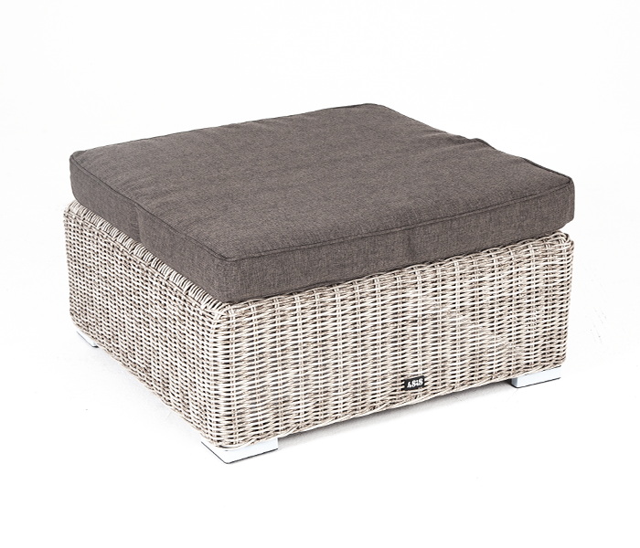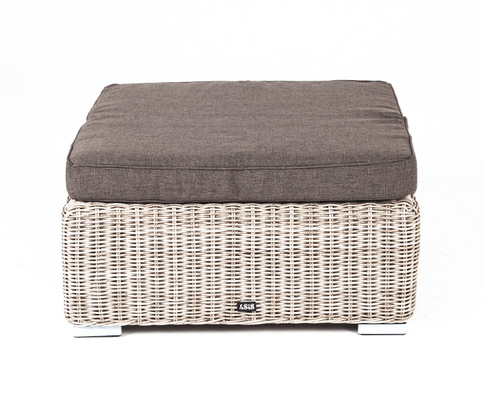 Она имеет каркас из алюминия высокой прочности. Для изготовления используется ручное круглое плетение, выполненное из искусственного ротанга. Оттоманка может служить в комплекте с трансформирующимся диваном «Лунго».