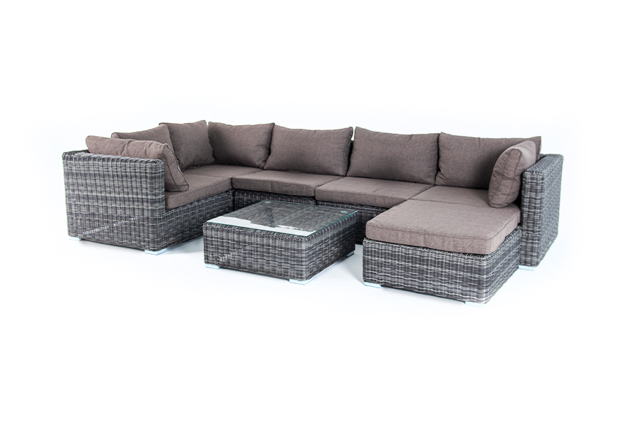Она имеет прочный каркас на основе алюминия. Выполнена с помощью ручного круглого плетения из искусственного ротанга в цвете «графит».