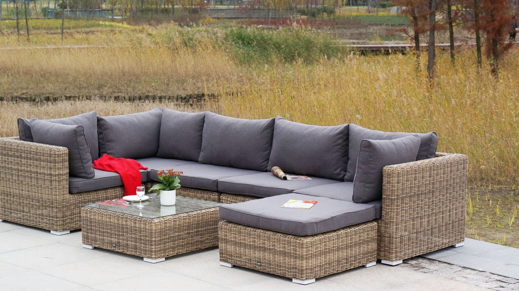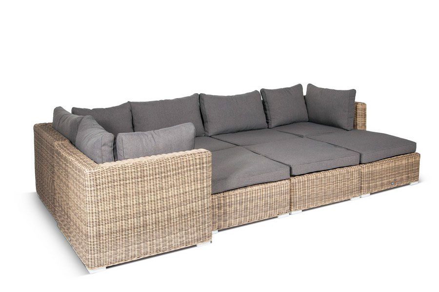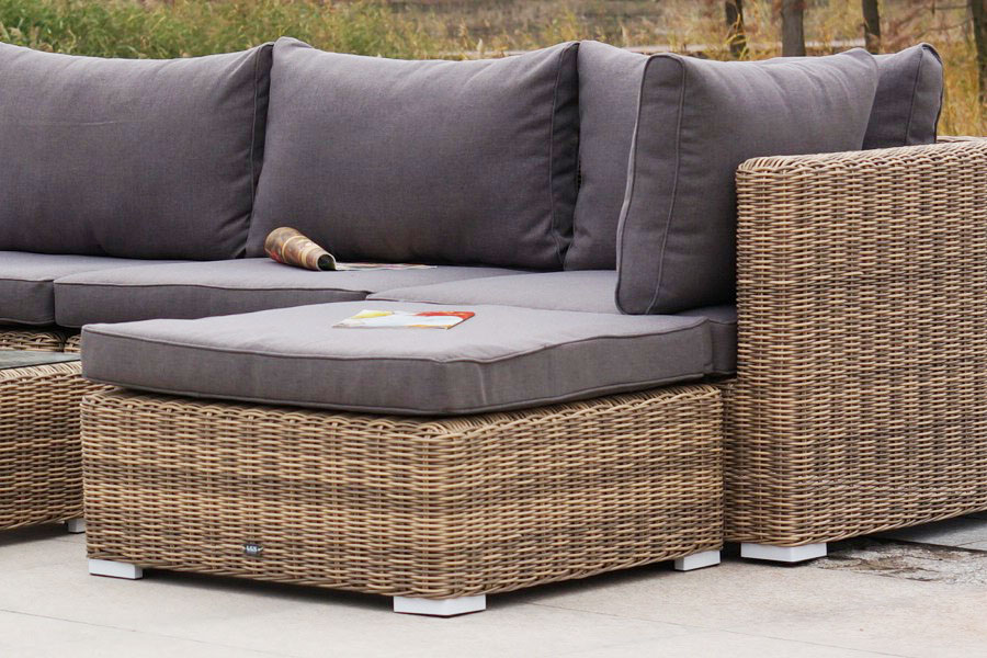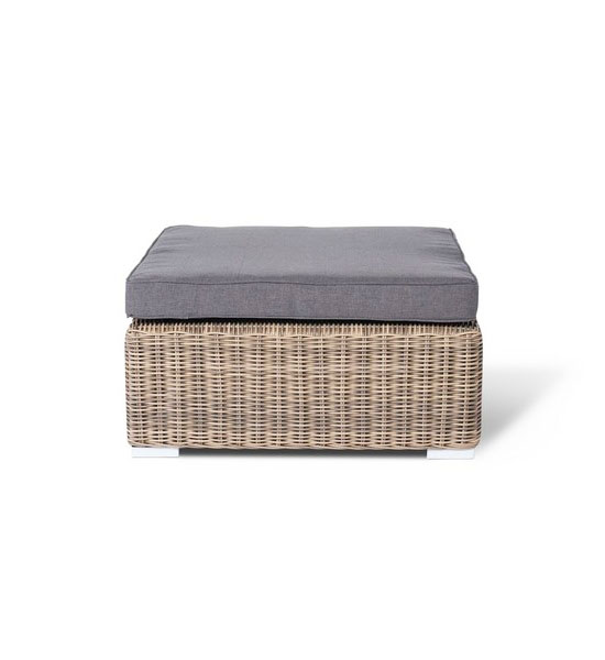 Она имеет каркас из алюминия высокой прочности. Для изготовления используется ручное круглое плетение, выполненное из искусственного ротанга. Оттоманка может служить в комплекте с трансформирующимся диваном «Лунго».