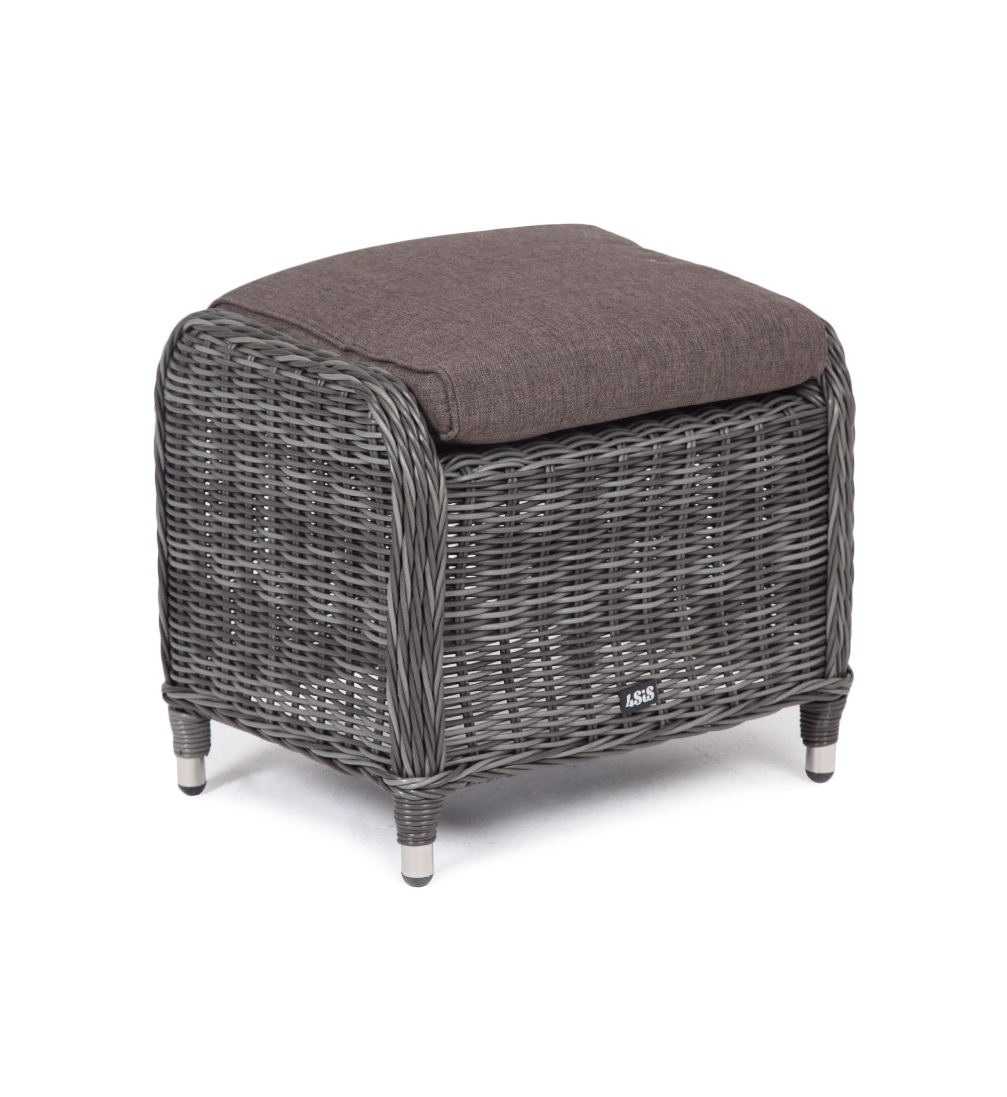 Алюминиевый каркас используется при изготовлении основы пуфа. В роли декоративного элемента выступает ручная оплетка, созданная из искусственного ротанга. Представлена в цвете графит.