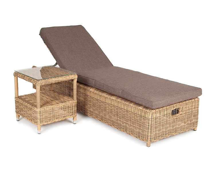 Спинка шезлонга обладает четырьмя уровнями наклона. Ширина составляет 66 см, длина 199 см и 31 см в высоту. Завершающим элементом данной модели, являются мягкие подушки из высококачественного полиэстера с влагоотталкивающей пропиткой.