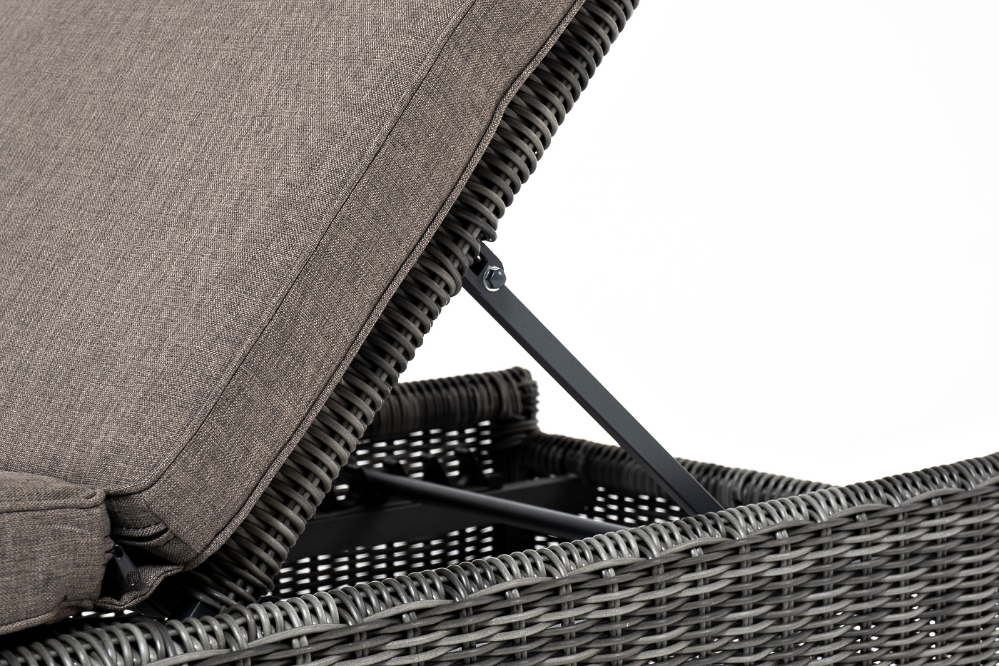 Спинка шезлонга обладает четырьмя уровнями наклона. Ширина составляет 66 см, длина 199 см и 31 см в высоту. Завершающим элементом данной модели, являются мягкие подушки из высококачественного полиэстера с влагоотталкивающей пропиткой.