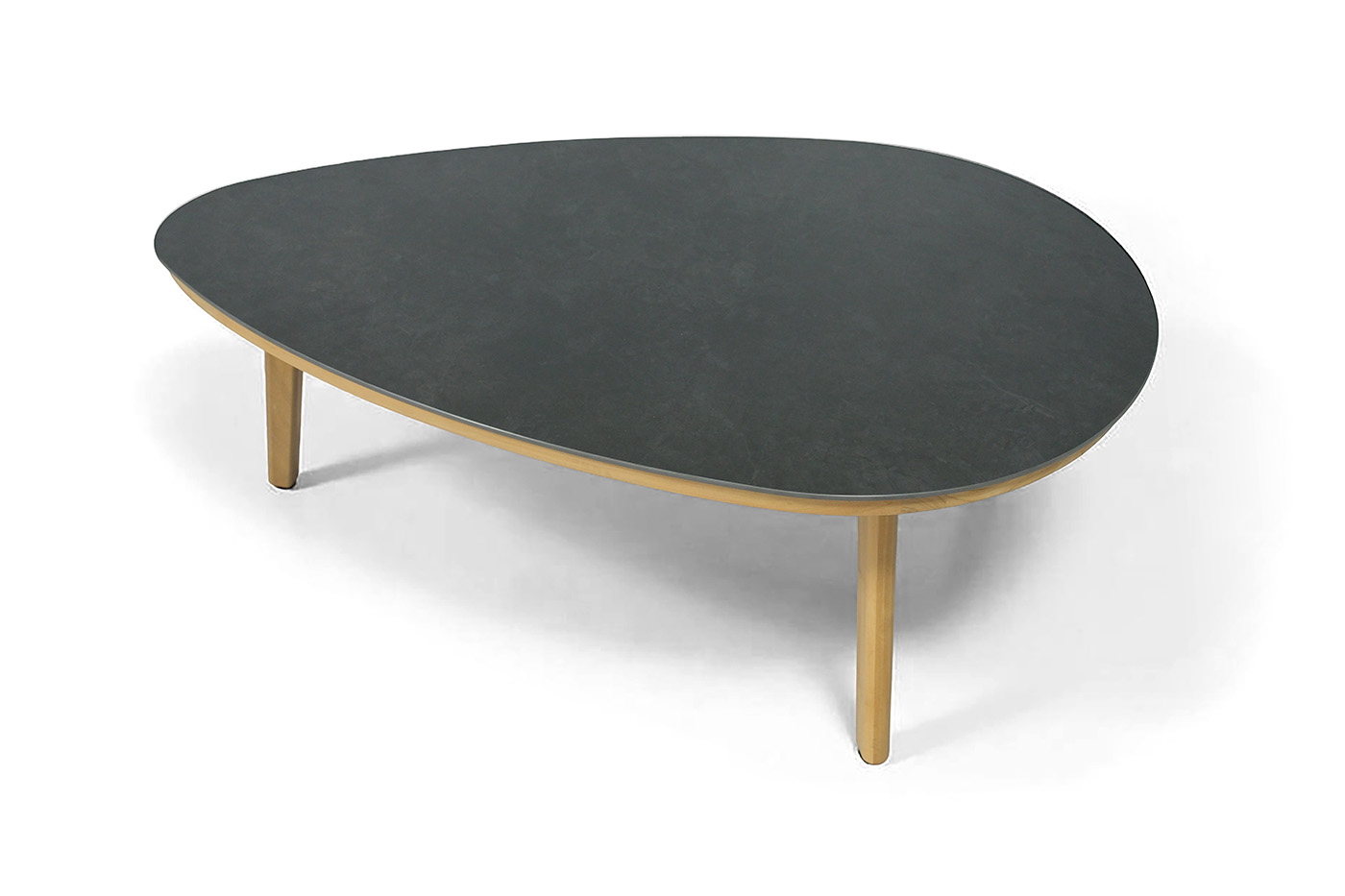 Основание из натурального тика придает теплоту и природную красоту. Тёплый древесный оттенок и природная фактура создают ощущение тепла и близости к природе. Столешница из искусственного камня в глубоком чёрном цвете. Придаёт столу современный облик и подчёркивает его элегантность.