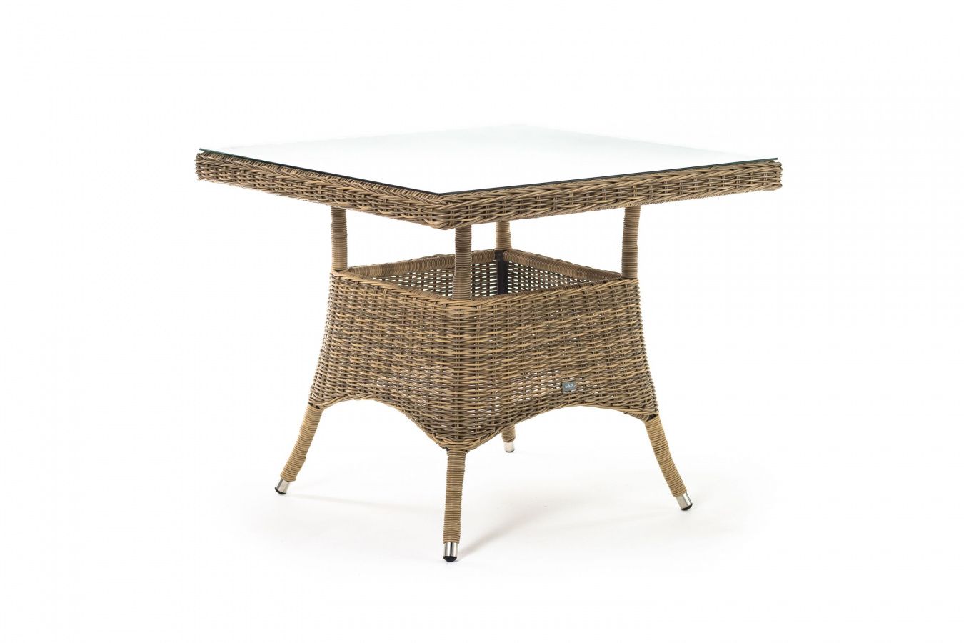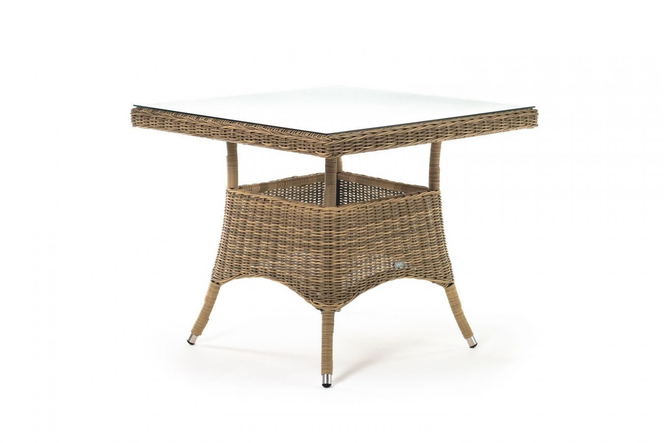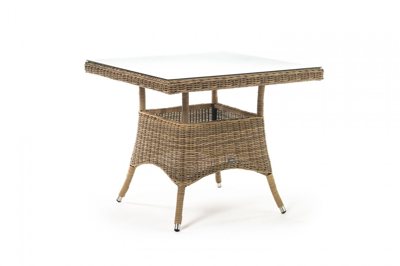 Размер садового стола: 900×900×750 мм. Его можно дополнить креслами «Латте» и создать обеденную группу для компании из 4-х человек.