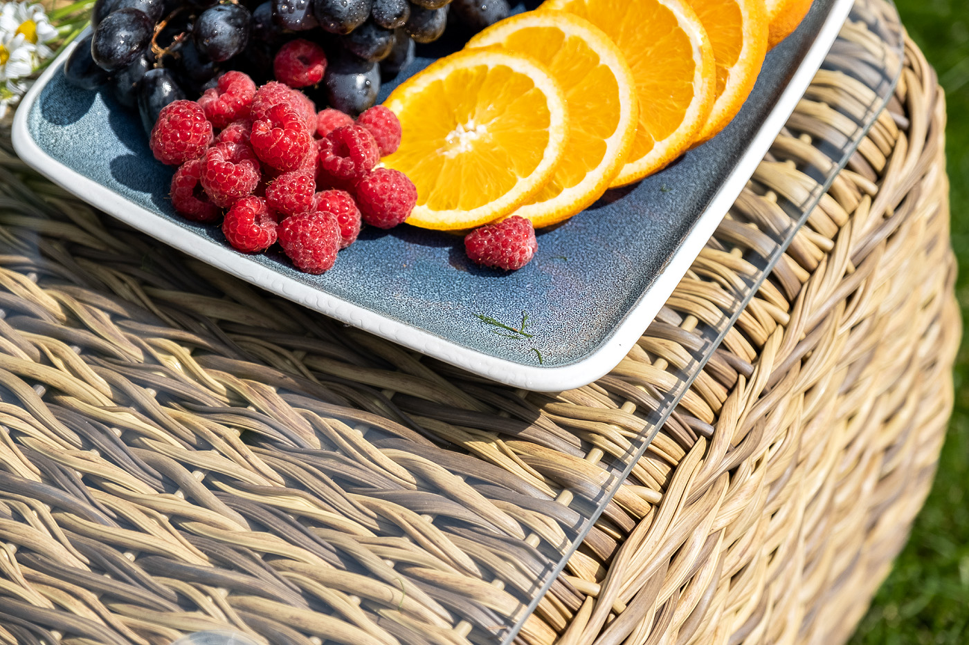 Каркас столика изготовлен из алюминия, вручную оплетенного круглым искусственным ротангом "гиацинт".