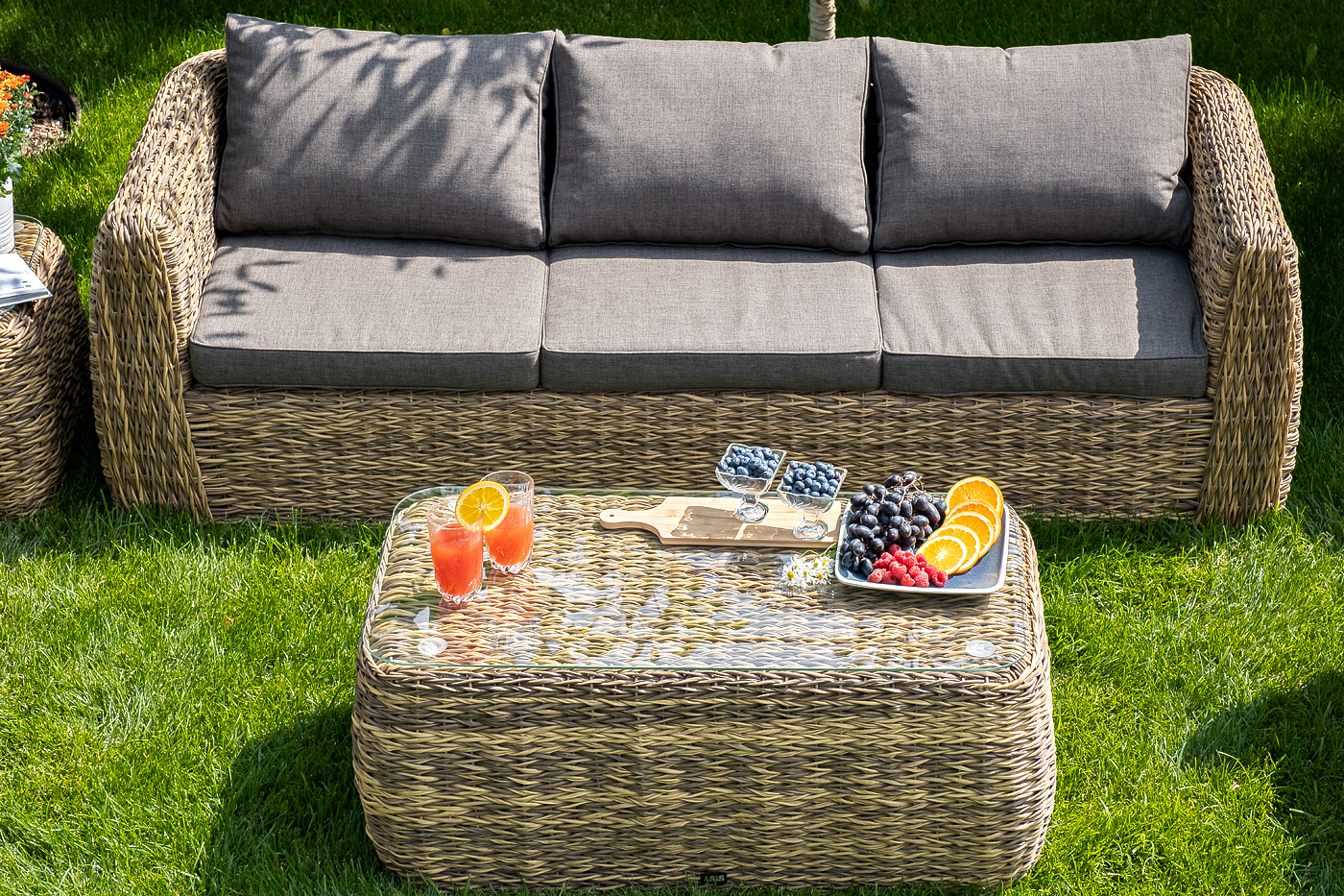 Журнальный столик «Кальяри» используется как в комплекте, так и в качестве отдельного предмета для сада, открытой террасы или балкона.