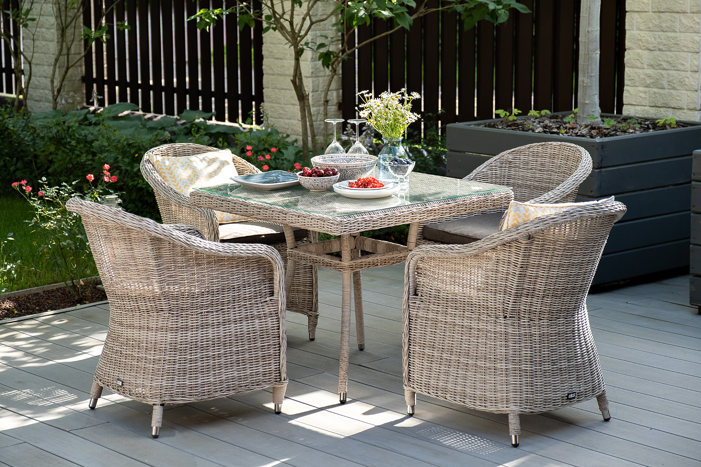 В комплект включена мягкая подушка серого цвета. Благодаря такой расцветке кресло идеально вписывается в любой интерьер, а также сочетается с другой мебелью, выполненной в натуральных оттенках. Дизайнерское кресло подойдет и для помещений, и для эксплуатации под открытым небом.