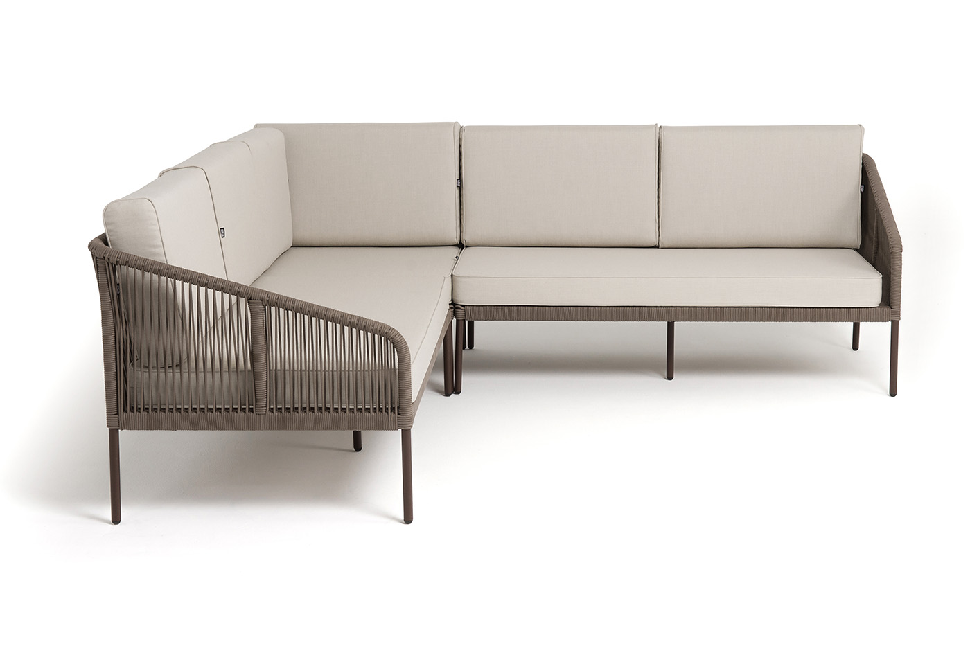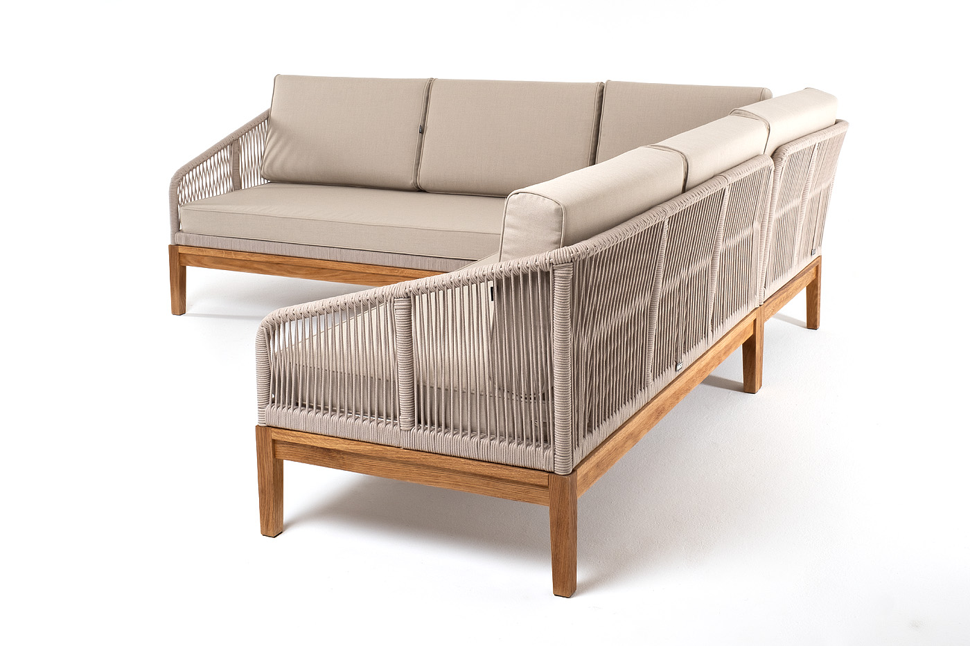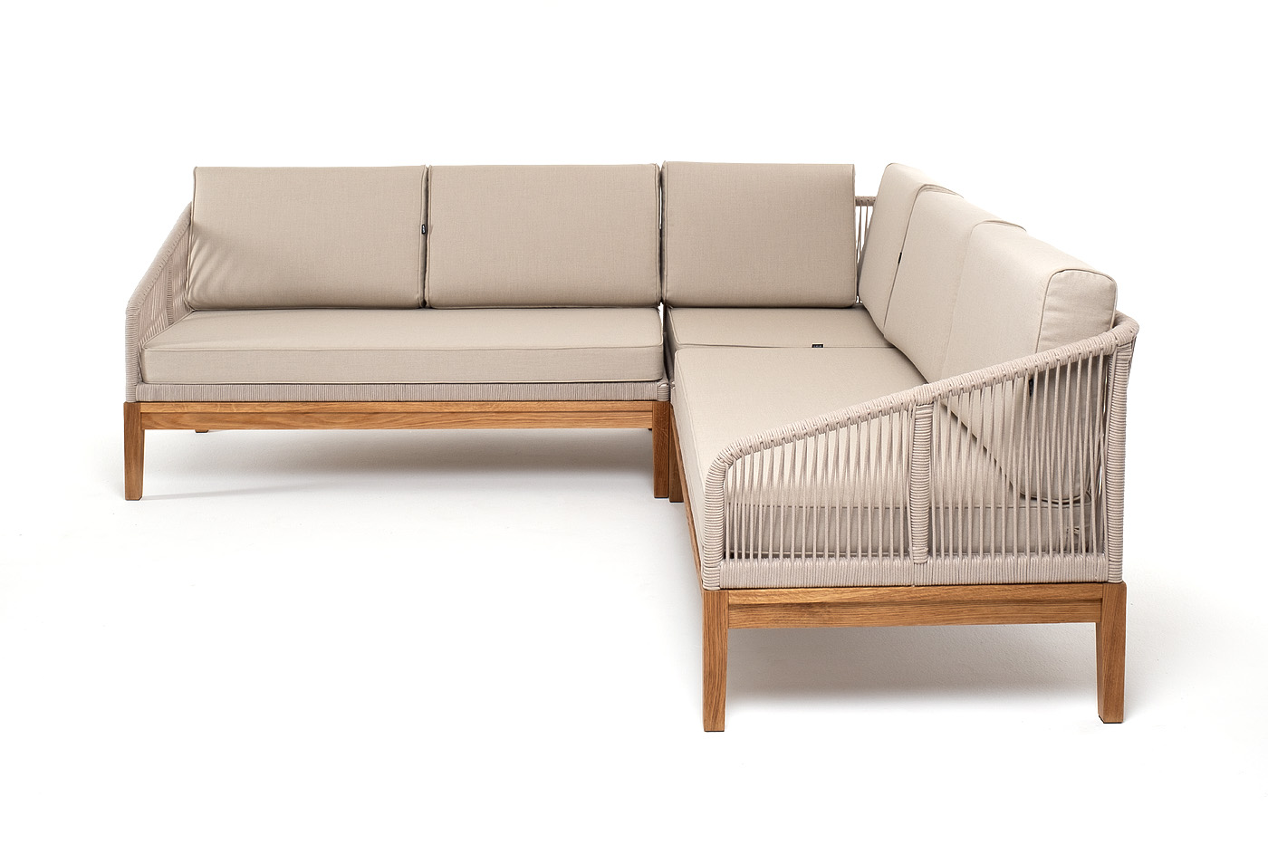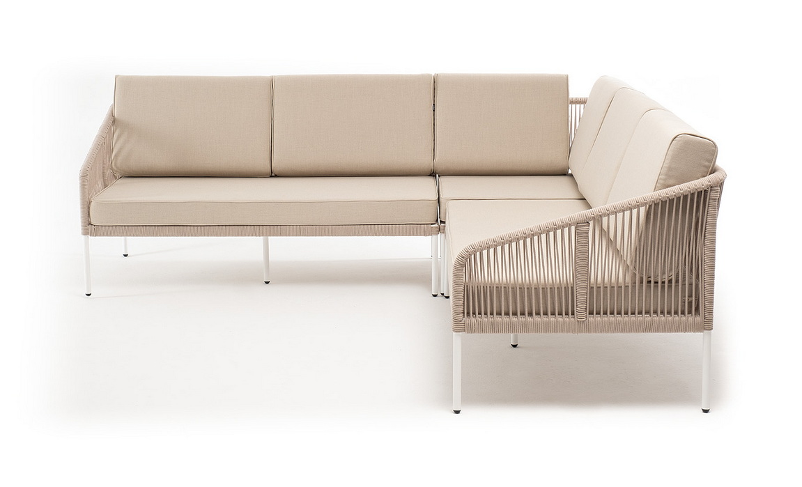 Боковины каркаса вручную оплетены роупом - эластичными синтетическими лентами, изготовленными из высокопрочных полиэфирных волокон. Цвет оплетки - бежевый. Основание дуб.