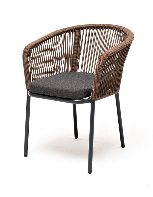 Выполнен из алюминиевого каркаса коричневого (RAL8016) цвета. Оплетка - современный материал «роуп», которым каркас оплетался вручную.