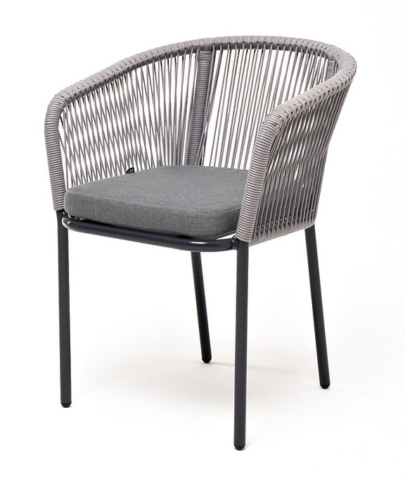 Выполнен из стального каркаса, окрашенного в серый (RAL7022) цвет. Оплетка - современный материал «роуп», которым каркас оплетался вручную.