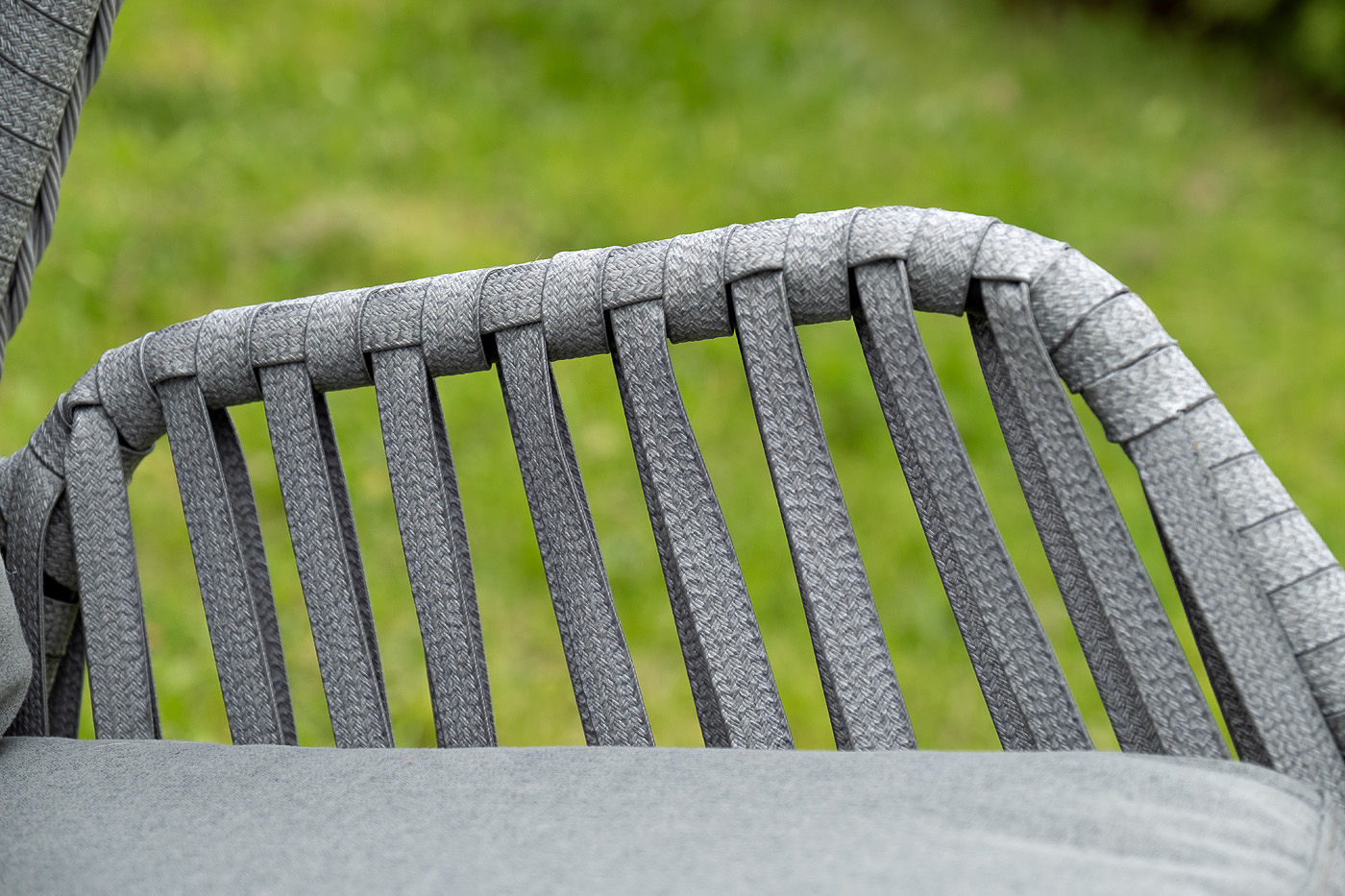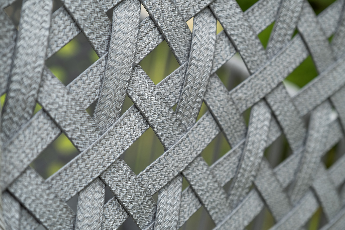 Каркас изготовлен из стали, окрашенного порошковой износостойкой краской черного цвета. Оплетка – плоский искусственный ротанг серого оттенка. Материал устойчив к перепадам погоды и подходит для использования на открытых пространствах.