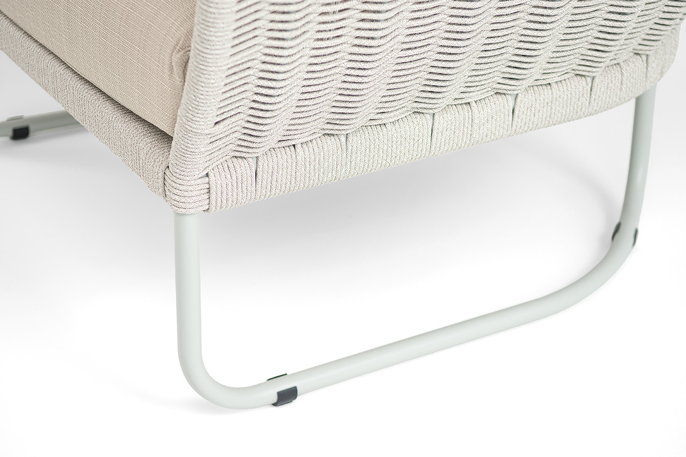 Плетение боковины каркаса вручную оплетены роупом — эластичными синтетическими лентами из высокопрочных полиэфирных волокон. Оплетка - круглый tex, что придает креслу изысканный и оригинальный внешний вид.