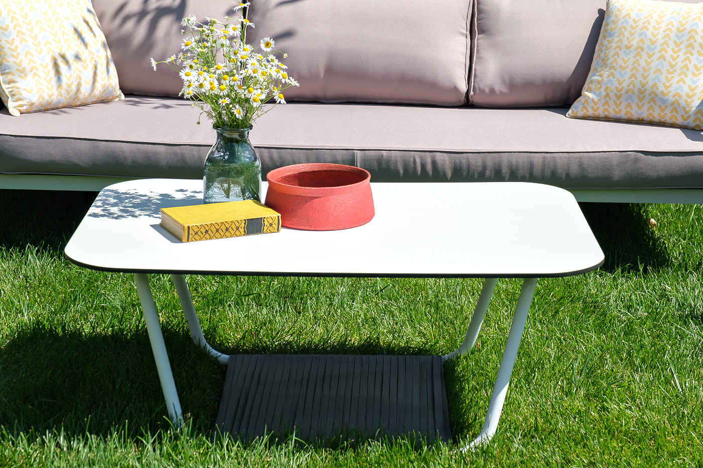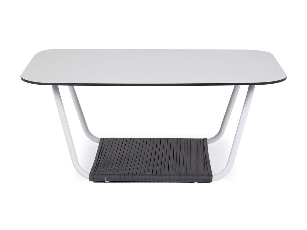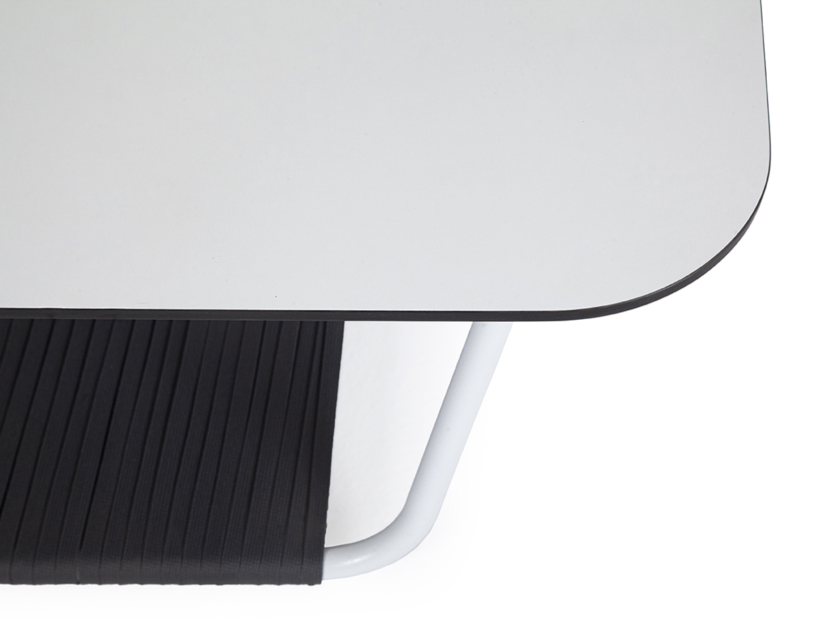 Столешница выполнена из высококачественного монолитного компакт-пластика HPL молочного оттенка. Толщина материала 12 мм. Каркас − из алюминиевого профиля, окрашенного в белый цвет.
