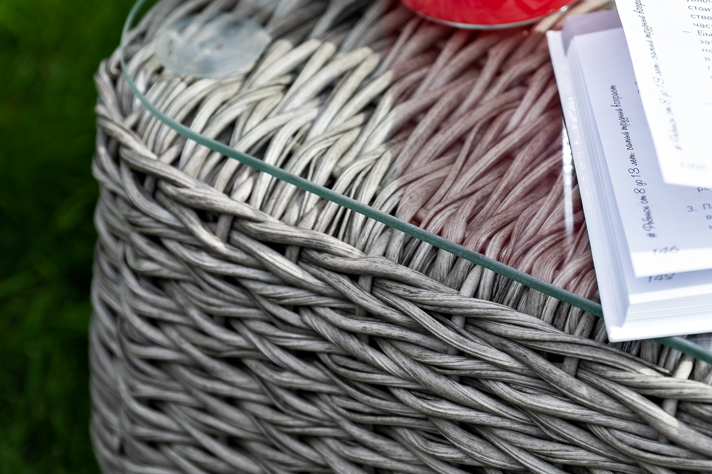 Каркас столика изготовлен из алюминия, вручную оплетенного круглым искусственным ротангом "гиацинт".