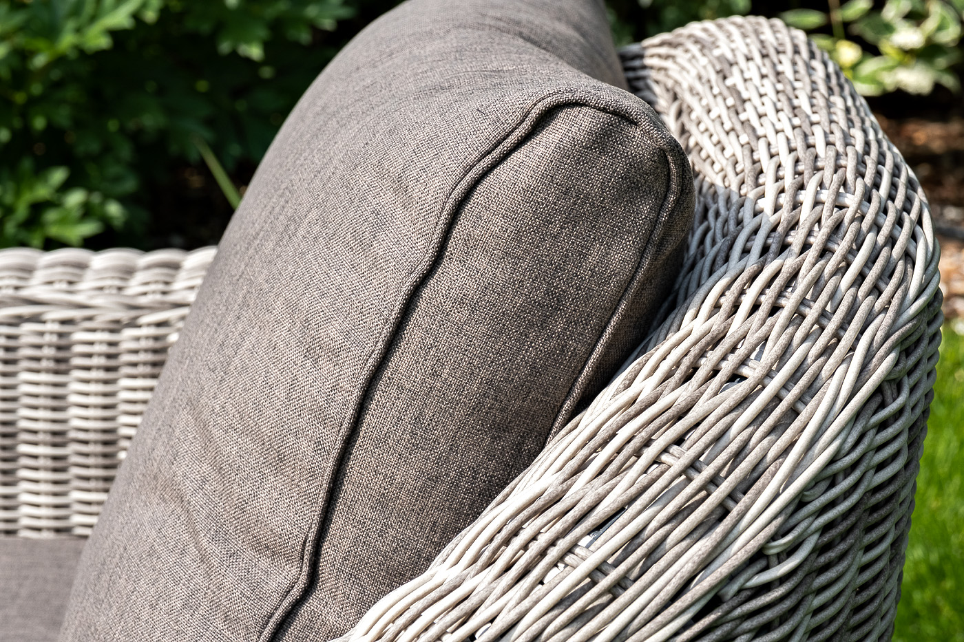 Сиденье и спинка оснащены удобными комплектными подушками из 100% полиэстера, пропитанного специальным водоотталкивающим составом.