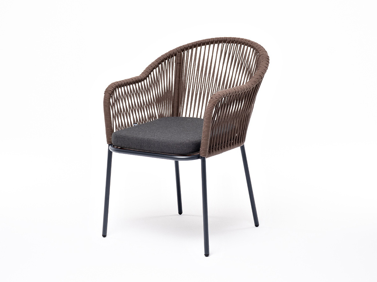 Подушка в комплекте со стулом выполнена из полиэстера 100% плотностью 300гр/м2 с влагоотталкивающей пропиткой. Это надежный и прочный материал, который легко очищается и устойчив к неблагоприятным погодным условиям.