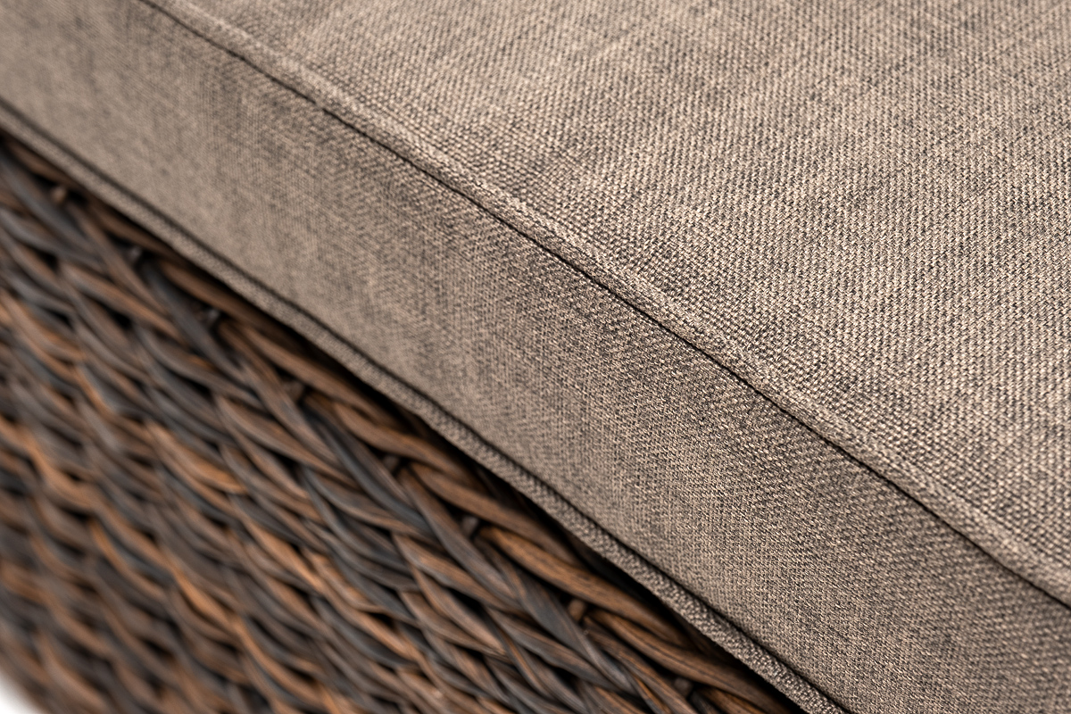 Предмет мебели дополняется мягкой подушкой в съёмном чехле серого цвета. При пошиве берется полиэстер с плотностью 300гр/м2. Предусмотрена влагоотталкивающая пропитка, которая защищает изделие от влаги.
