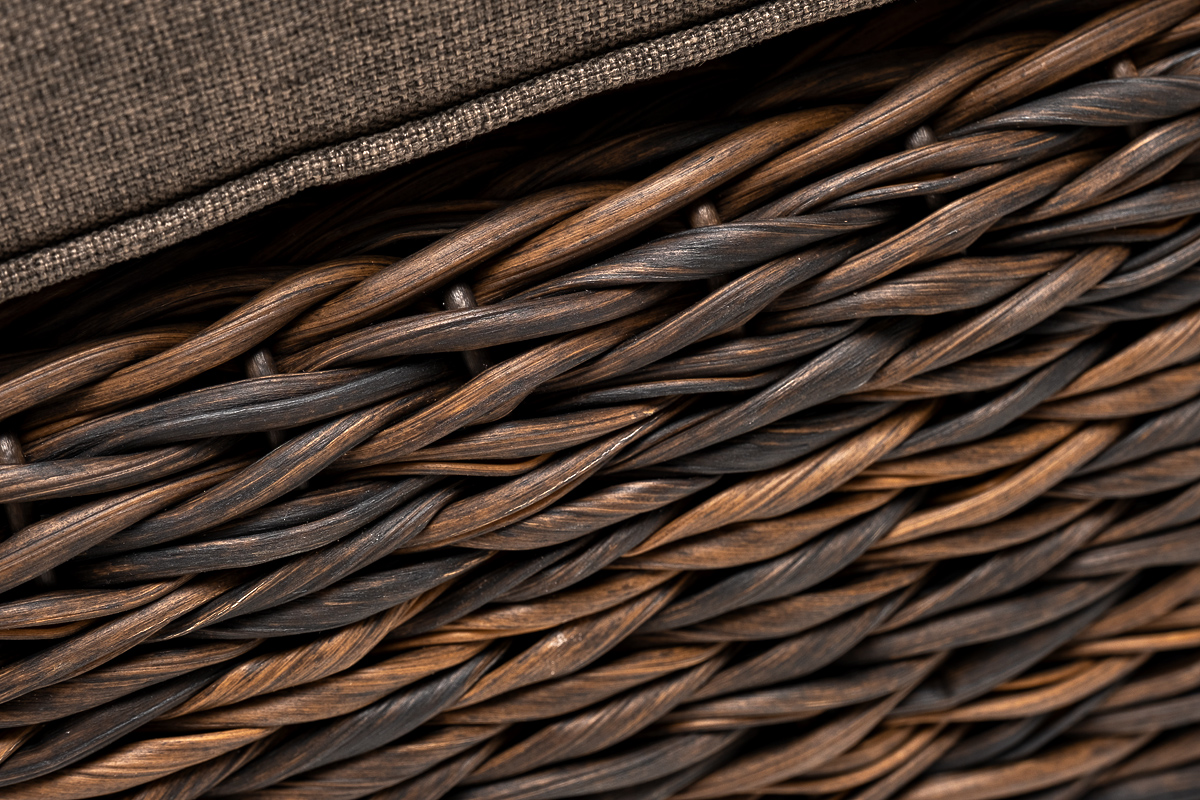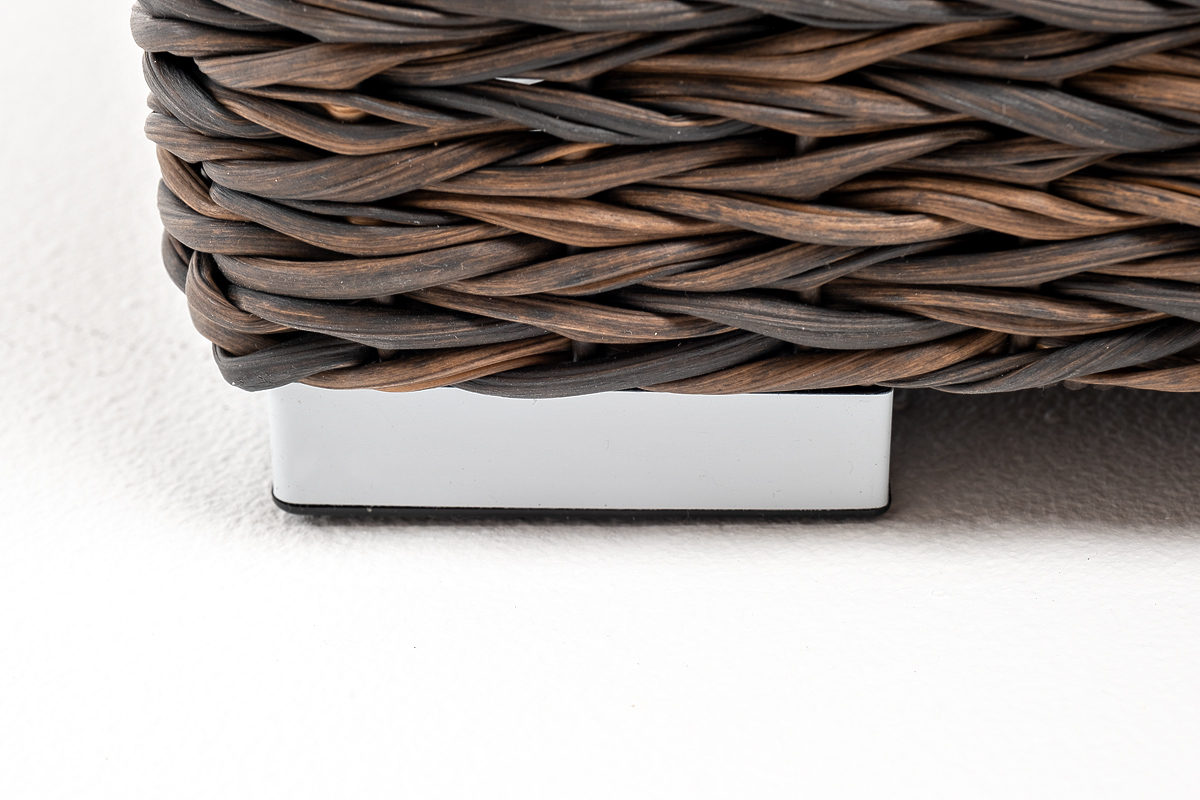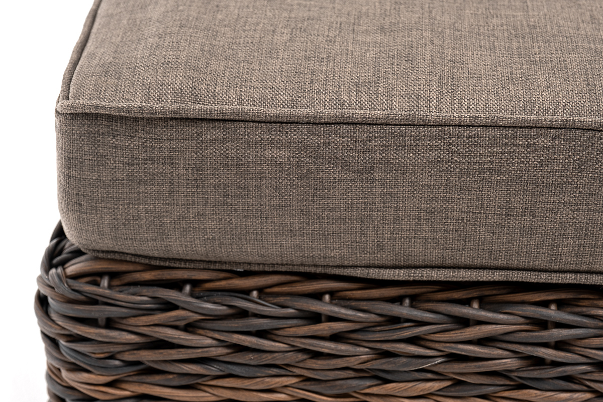 Она имеет каркас из алюминия высокой прочности. Для изготовления используется ручное плетение вида «гиацинт», выполненное из искусственного ротанга. Оттоманка может служить в комплекте с трансформирующимся диваном «Лунго».