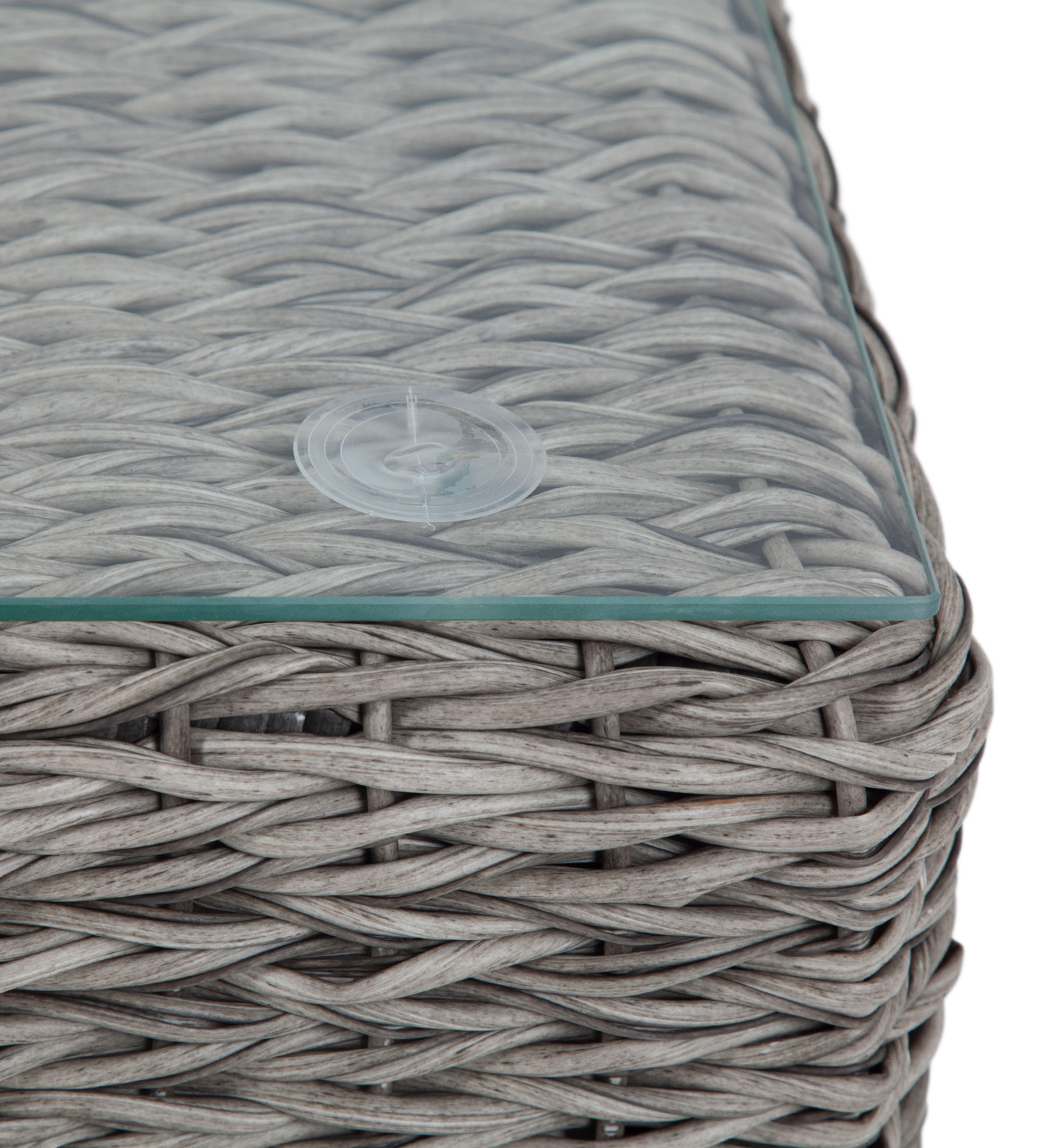 Журнальный столик «Лунго» украсит собой любую зону отдыха. Размер модели – 740×740×300 мм. Компактные габариты позволяют удобно разместить мебельный элемент в месте с ограниченным свободным пространством. Столик имеет прочный алюминиевый каркас. Ручное плетение вида "гиацинт" сделано из искусственного ротанга и представлено в сером цвете.