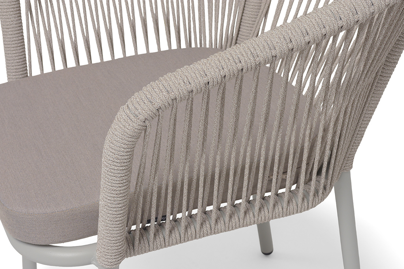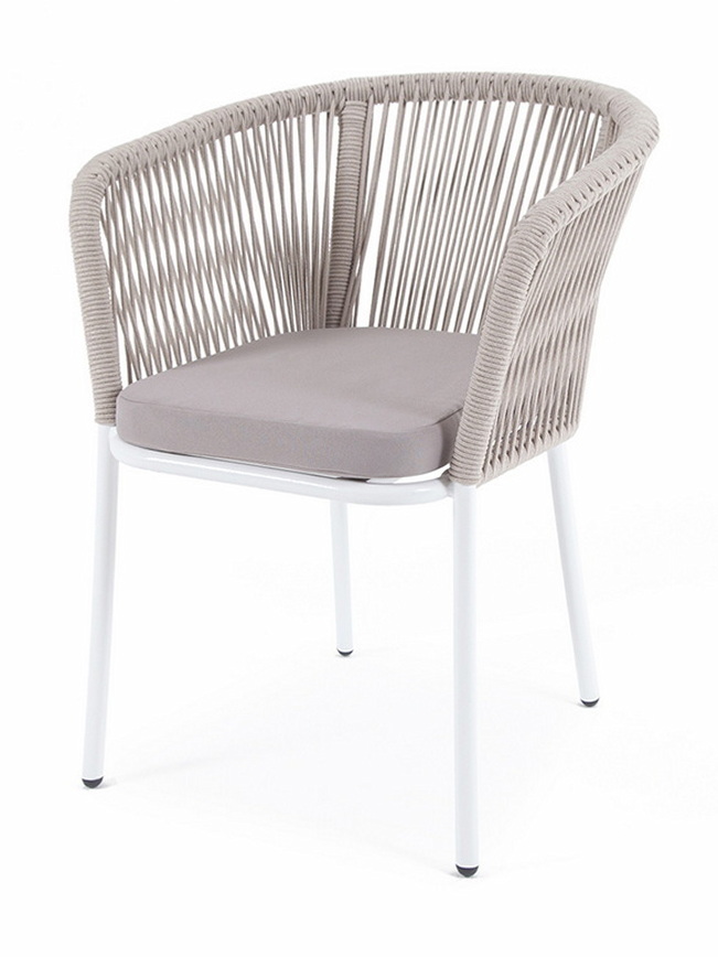 Выполнен из алюминиевого каркаса, окрашенного в светло-серый (RAL7035) цвет. Оплетка - современный материал «роуп», которым каркас оплетался вручную.