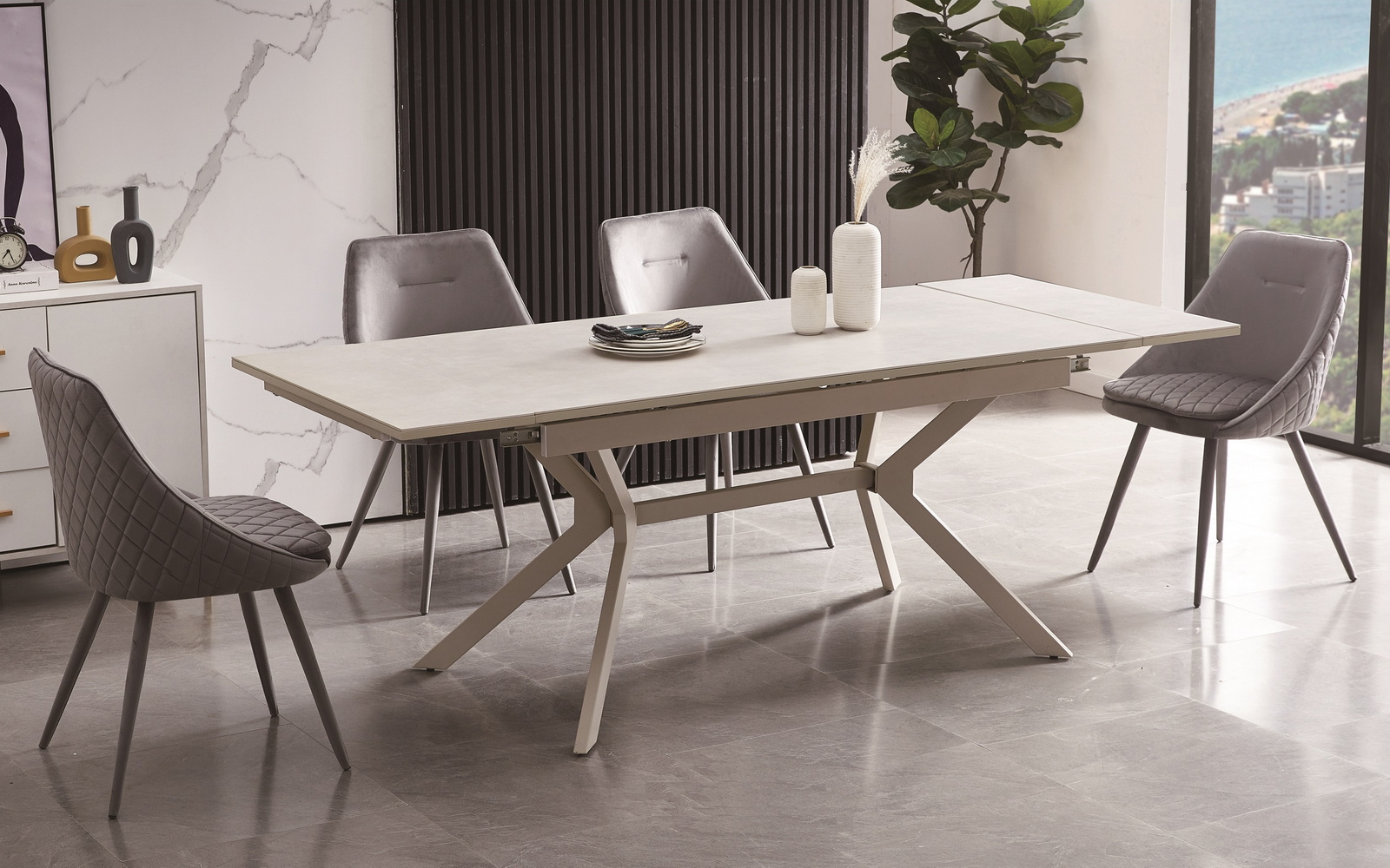 В сложенном виде его размеры составляют 160×90×76 см, однако при необходимости его легко можно удлинить до 220 см, благодаря двум интегрированным в столешнице механизмам, которые выдвигаются с обеих сторон.