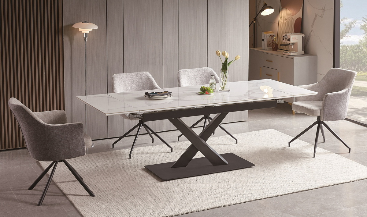 Стол оснащен раздвижным механизмом с обеих сторон, что позволяет легко и быстро превратить стол в пространство для большой компании. Размер стола в сложенном виде составляет 160×90×76 см, в разложенном - 220×90×76 см.